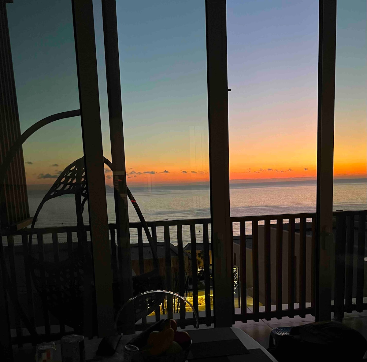 The Villa was lovingly built, high-beamed ceilings, and details for a luxurious yet charming feel. Enjoy the sea and mountain views from garden/windows. The Villa is located in the Palase Beach, a locals-only spot with unspoilt, fine white sand/stones and curling surfing waves. Although shops and restaurants are only a three-minute away, the area feels peaceful and secluded. The Villa has security cameras outside of the building.