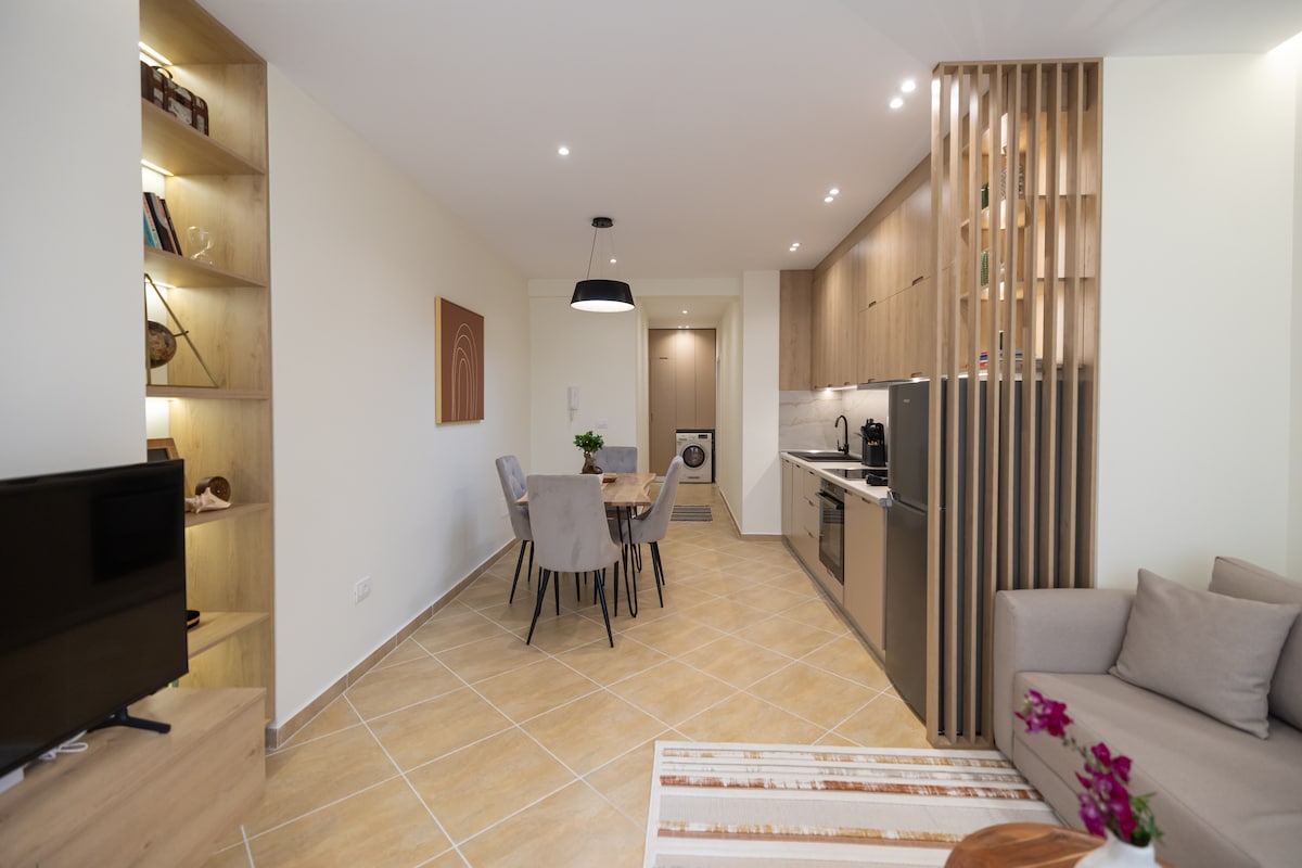 Welcome to our beautiful hilltop studio, nestled by “Uji I Ftohte” in Lungomare. Enjoy a fully equipped kitchen, a cozy sleeping area, a modern bathroom, and a spacious balcony that offers breathtaking sea views. All the beaches, cafés, markets, and restaurants are within 5-15 minutes of walking. The bus stop, located only 4 minutes away, offers easy access to Vlora's vibrant city center for just 35 cents. Self-check-in and check-out make your stay even more convenient.