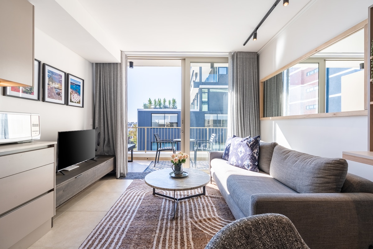 Stylish one-bedroom apartment in Green Point with stunning panoramic sea views and a private balcony. Perfect for digital nomads, featuring fast Wi-Fi (400 Mbps download / 150 Mbps upload), a 4K smart TV with Apple AirPlay, and a fully equipped kitchen. Centrally located, within walking distance to cafes, restaurants, and top attractions. Enjoy bright, sunny spaces, eclectic decor, and a quiet, comfortable atmosphere ideal for work or relaxation.