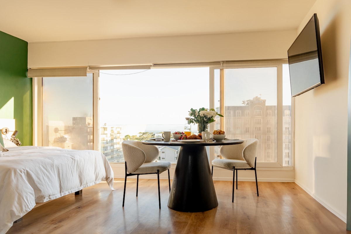 Stylish one-bedroom apartment in Green Point with stunning panoramic sea views and a private balcony. Perfect for digital nomads, featuring fast Wi-Fi (400 Mbps download / 150 Mbps upload), a 4K smart TV with Apple AirPlay, and a fully equipped kitchen. Centrally located, within walking distance to cafes, restaurants, and top attractions. Enjoy bright, sunny spaces, eclectic decor, and a quiet, comfortable atmosphere ideal for work or relaxation.