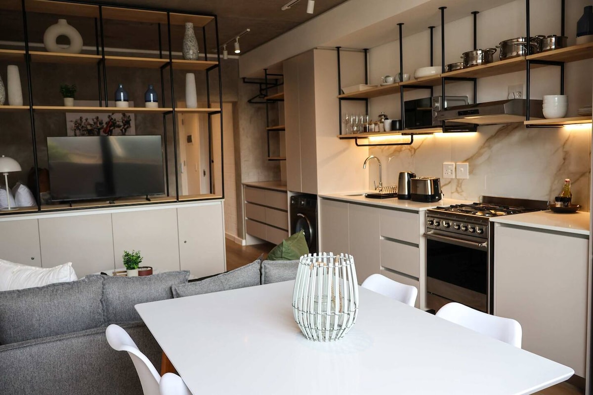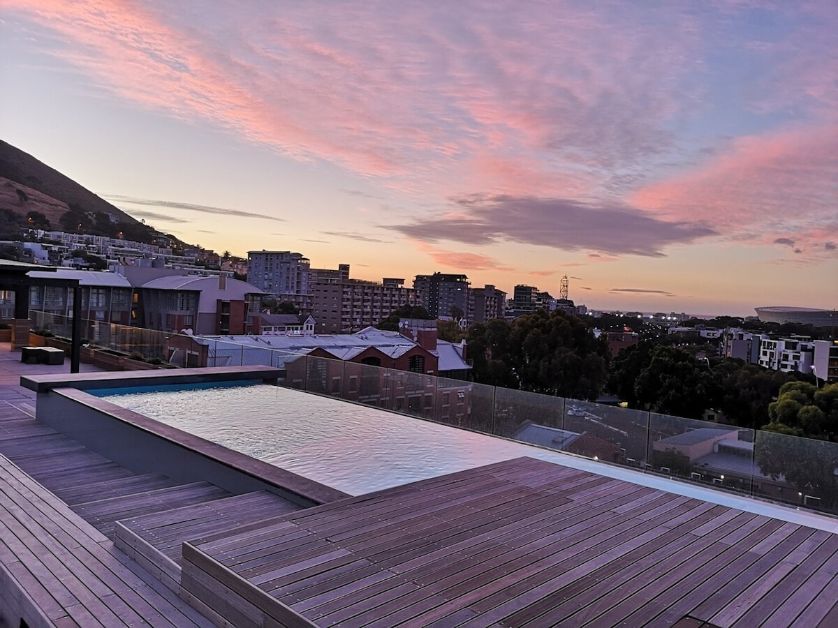 Welcome to our brand new designer home where where practical meets beauty and stylish taste is the order of the day. Throw your curtains open in the morning to enjoy the Table Mountain views from your ample balcony. The industrial feel and high ceilings give a gallery feel. If the moment grabs you head up to the roof top pool deck and entertainment area where you can enjoy crimson pink sunsets and 360 degree views of Cape Town including the Atlantic Ocean. *Zero power cuts in this building.