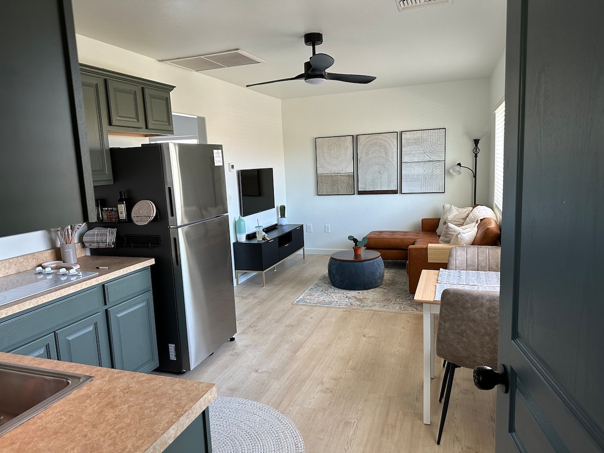 Newly remodeled AirBnb in the heart of Tubac! Large hacienda with full kitchen and master bedroom with KING bed. Stunning tile bath and private covered parking. We offer WiFi with an oversized desk for a spacious "away from home" workspace. And, due to current world health concerns, we want you to know that we are doing our part to help out AirBnb guests stay safe by disinfecting frequently touched surfaces (light switches, door knobs, cabinet handles, remotes, etc.) before you checkin.