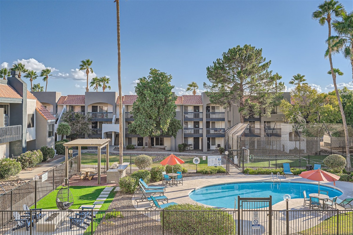 Nestled in a beautiful resort-style community the Ventana Retreat offers it all. The community features 3 resort-style pools - 2 are heated during winter months, on-site Fitness Center, Clubhouse, Gas BBQs, Stunning Landscaping, and Unbelievable Views! This upgraded unit has, 2 Bedrooms, 1 Full Bathroom, Free Wi-Fi, a Great Kitchen with Stainless Steel Appliances, Private Balcony with Views, Hardwood Floors, Granite Counters, and More! Make this vacation rental your relaxing Tucson retreat.
