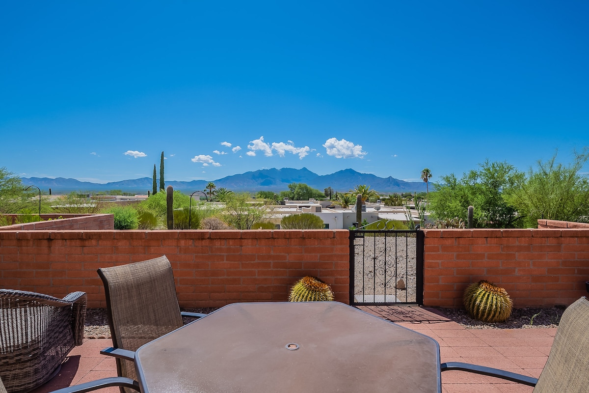 A true Oasis with Private pool, hot spa, grill, outdoor fire pits and indoor wood fireplace. 10 mins drive to shopping center, golf courses, movie theater, restaurants and casino. View of Madera Canyon. 20 mins from airport and Tucson. 30 mins from Tubac. Great for relaxing or entertaining small groups. Perfect for couples, solo adventurers, business travelers and families. Bright and open floor plan with solid brick masonry construction. Walking distance from Anamax Park.