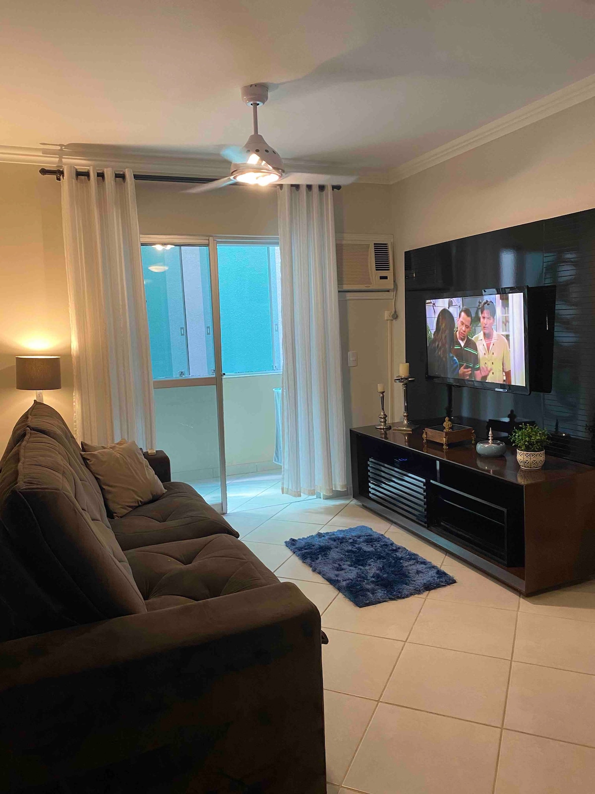 Apartamento Aconchegante com Sacada e Churrasqueira 🌊✨ Nosso apartamento é amplo, arejado e perfeito para quem busca conforto, ele possui: Um quarto com cama box de casal e ar-condicionado e um roupeiro; Sala de estar com TV Smart, Netflix e Wi-Fi, integrada à cozinha completa com todos os utensílios e eletrodomésticos que você precisa; Um banheiro; Uma sacada encantadora com vista panorâmica para a praia, com uma churrasqueira ideal para momentos de lazer.