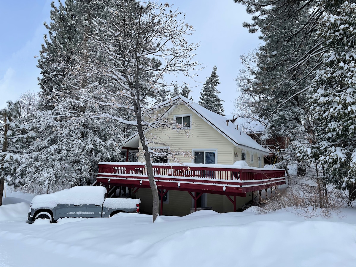 Welcome! We're excited to have you stay in our 1,042 sq ft 1960's cabin! Hiking trails to explore and skiing, snow tubing; 15 min to SNOW VALLEY Complimentary Smores & whiskey. Cabin is 3 min walk to Lake. You can fish for trout, swim at beach and boat. Lake open May 10 to October 31 2025 for boats. Complimentary use of snowplay sleds and snowball maker. We will snowplow the driveway for your arrival. Check weather conditions and roads as chains or 4WD may be required.