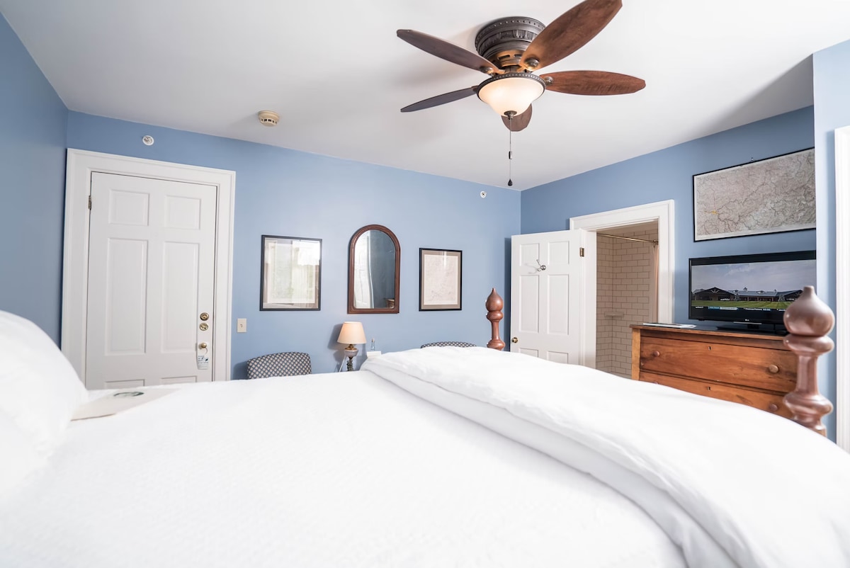 Lovely, brand new boutique hotel in the heart of downtown Lewisburg. Walk to everything! This room has a queen-size bed, as well as a twin-size pullout sofa.