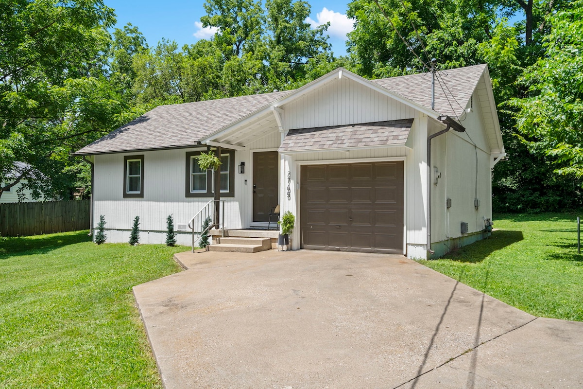 !NO CLEANING FEE PET FRIENDLY! This beautifully renovated, clean and simple 2-bedroom, 1-bath home is on a large lot in a quiet neighborhood near Hwy 65. Just minutes from dining, grocery stores, and more. Enjoy a King and Queen bed, Smart TVs in each bedroom and the living room, a fully stocked kitchen, and a garage. Pet-friendly with a 30-foot dog trolley runner cable ($50 pet fee). 10 minutes or less to Bass Pro, Mercy Hospital, and local universities. Branson is 40 minutes away!
