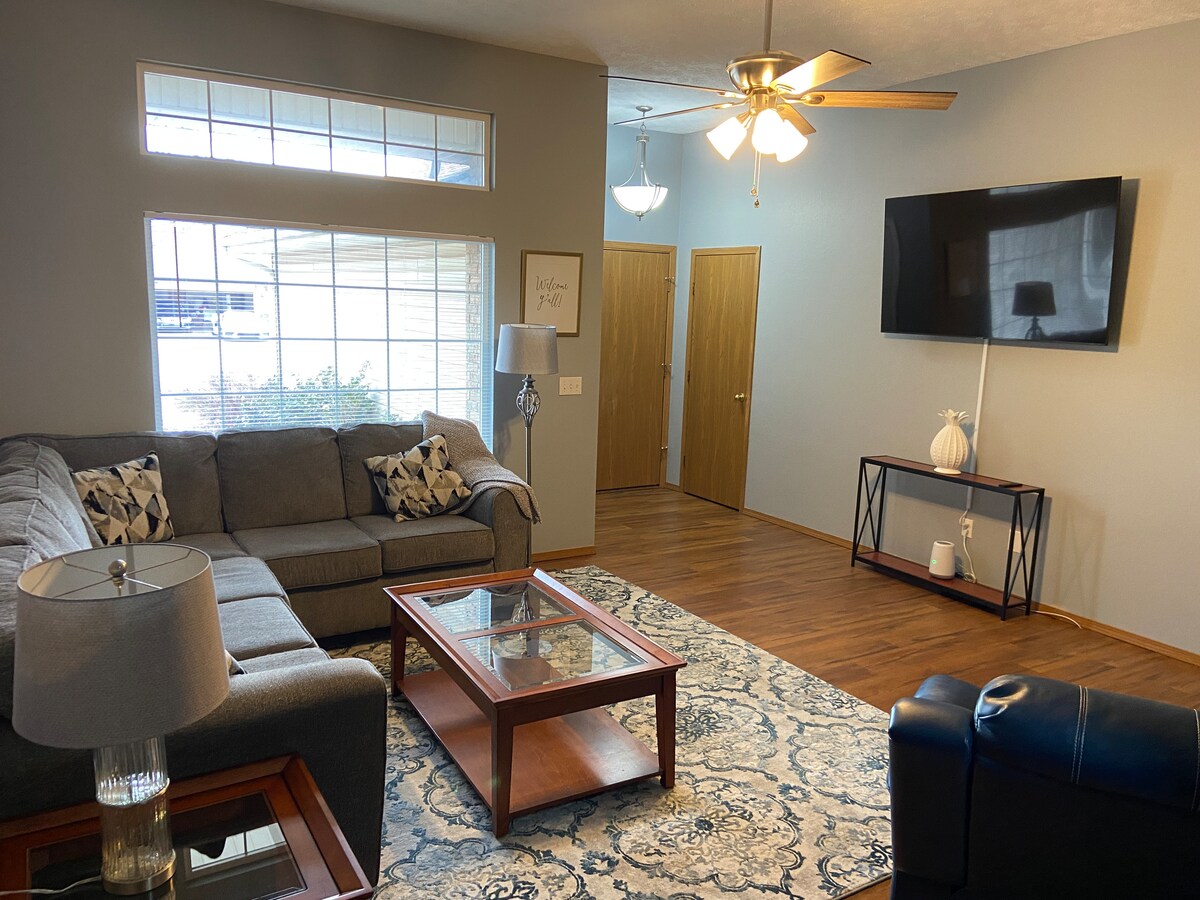 Location! Location! Location! Our completely private, remodeled duplex is located just south of Hwy 60 in Springfield, MO. We are only a couple minutes from the closest grocery stores, restaurants, and shopping centers. The Battlefield Mall, Bass Pro Wonders of Wildlife, Cox and Mercy hospitals are all under 10 minutes away, and Downtown Springfield is a short 15 minute drive. If our East unit is a bit too small for your group, you can combine your booking with our West unit if available!