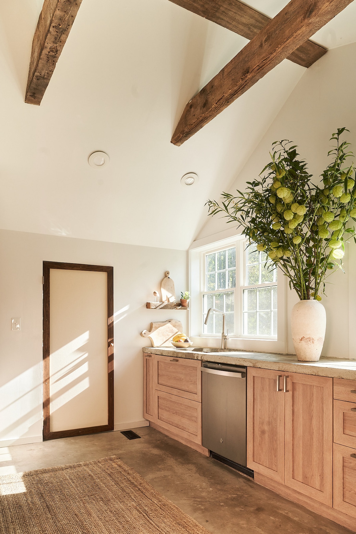 Enjoy expansive views of the Catskill Mountains from this stunningly renovated Scandanavian barn. Featured in more than 10 magazines and catalogues, including AirBnB Magazine! Walk the property, with its big open fields, an organic orchard, walking paths, and flower gardens. A large private pond is swimmable (after heavy rains it does get muddy). The Barn has central heat and air conditioning. A full bathroom features an antique bathtub. Enjoy dining inside, or outdoor grilling and dining.