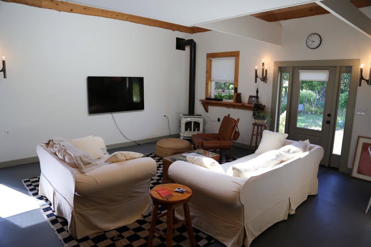 Open floor plan in an updated 100-year-old carriage house at the foot of the Great Northern Catskills and two hours from NYC. Our studio is close to hiking, boating, kayaking, fishing, hunting, horseback riding and walking distance to swimming holes. We're also near Woodstock, Saugerties and the HITS (Horse Shows in the Sun), Hunter and Windham Mountains, the famous Kaaterskill Falls and the Hudson River. A comfy, private space in tune with nature.
