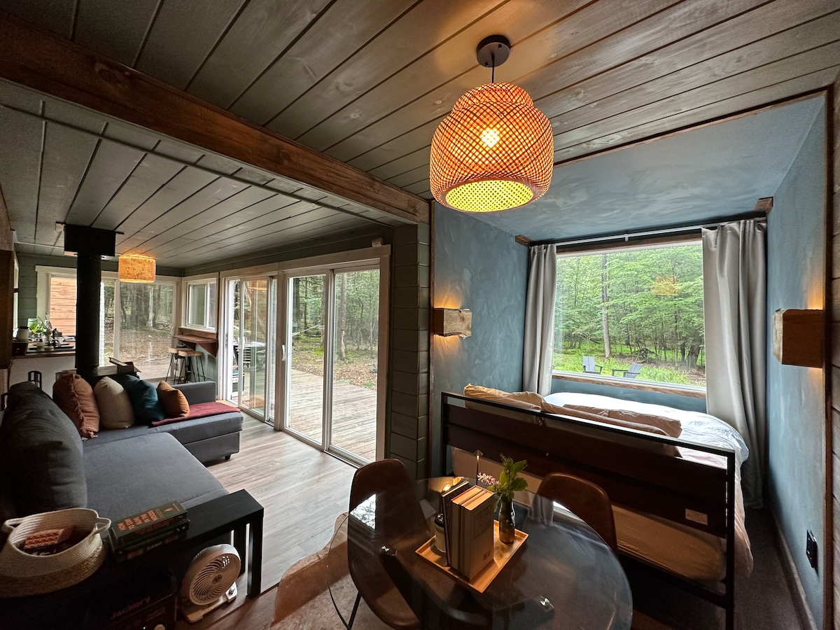 Enjoy our little cabin and feel off the grid, without being far from the charming village of Saugerties and close to Woodstock. Enjoy the beautiful Catskills area and retreat in our beautifully renovated “tiny haven” ... complete with a Mountain View! Ac cools beautifully in summer! The Haven at Blue Mountain! ******Can also be booked together with the Main House on the property, listed as Blue Mountain Haven! https://abnb.me/SMQTSu5LQpb