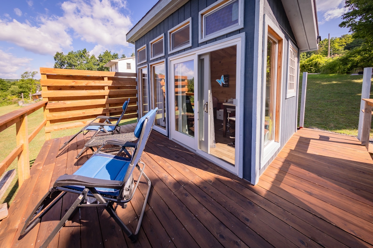A really really tiny house ,( smaller than most tiny houses) with a dome patio for viewing the sky. Two hours from NYC, close to skiing (hunter mountain/ Windham, Kaaterskill falls, Woodstock, Hudson, Saugerties. We have - Heat/AC, Queen bed, Hot shower, Flushing Toilet, Kitchenette, Fridge, Towels, linens etc. *Hudson Getaways is a small woman owned business. We offer discounts to our social media followers and to returning guests .
