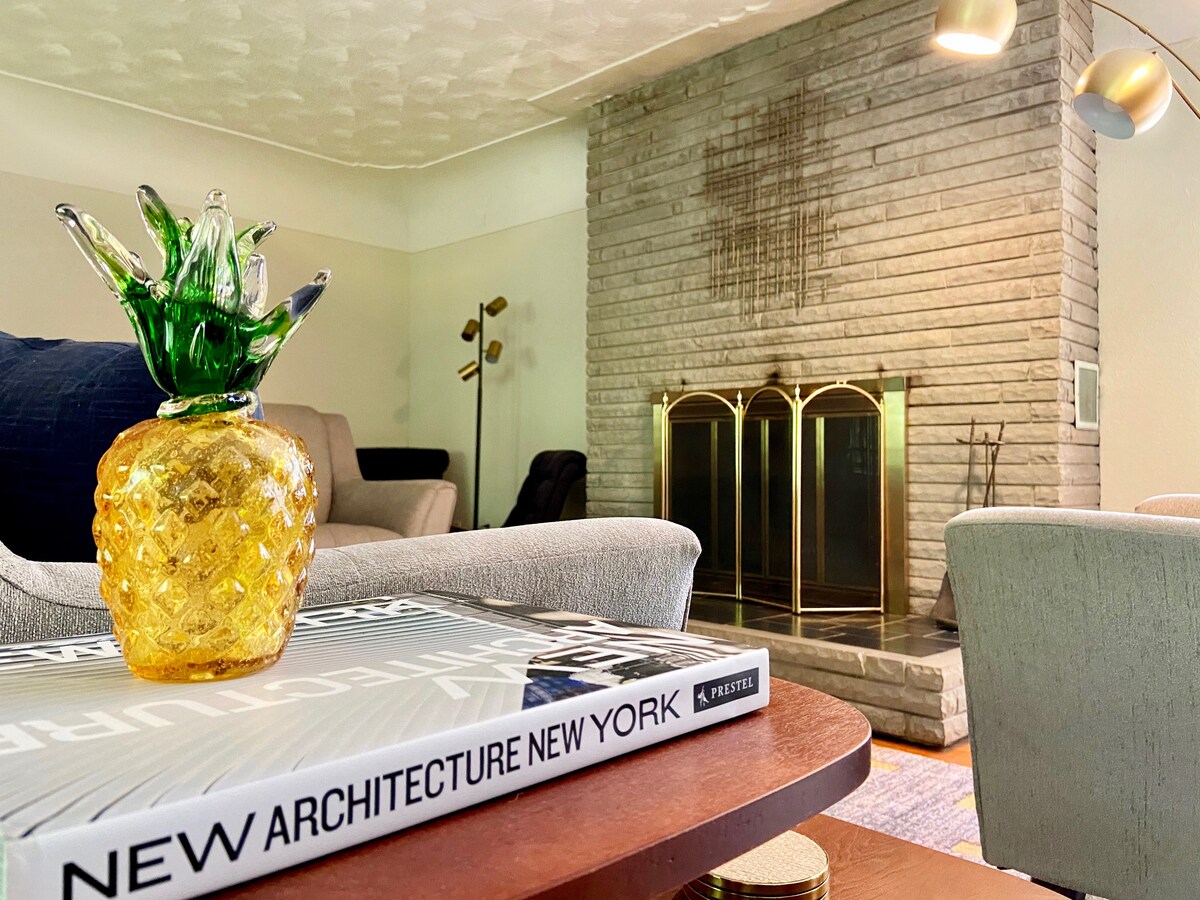 A Mid-Century Holiday beginning November 7th through January 4th, 2026! It's the Holiday Season and there's no better spot to spend a short weekend or Family gathering than the Wright Arbor House. Decorated in true Mid-Century style, the house offers plenty of nostalgia and plenty of opportunities for new memories. If you like something to talk about, come cuddle up by the fireplace with a hot cup of cocoa.