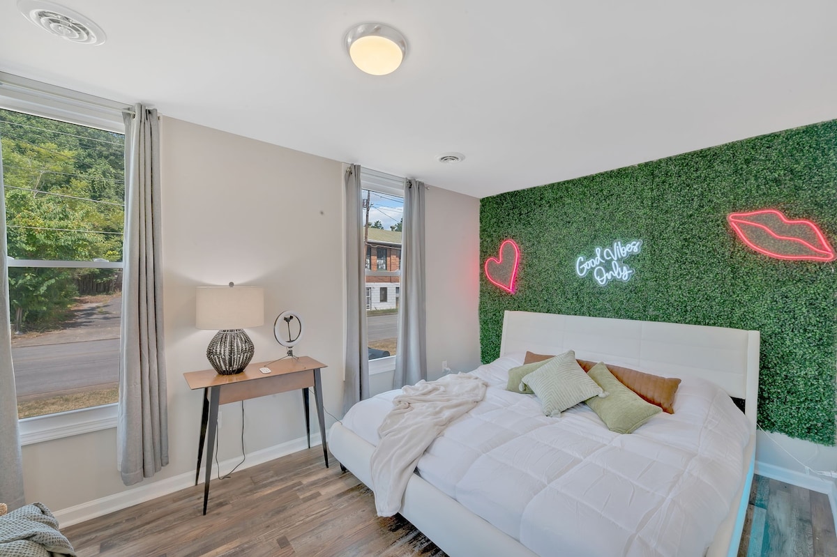 Welcome to our charming downtown Greeneville Airbnb! Located just a short walk from Main Street, our cozy retreat offers the perfect blend of convenience and entertainment. Enjoy a vibrant arcade room equipped with a big-screen TV, perfect for fun-filled evenings. Experience the best of Greeneville right at your doorstep! This is one of 3 total units. This unit is on the bottom level with one bedroom (King size bed) and a sleeper sofa in the living room.