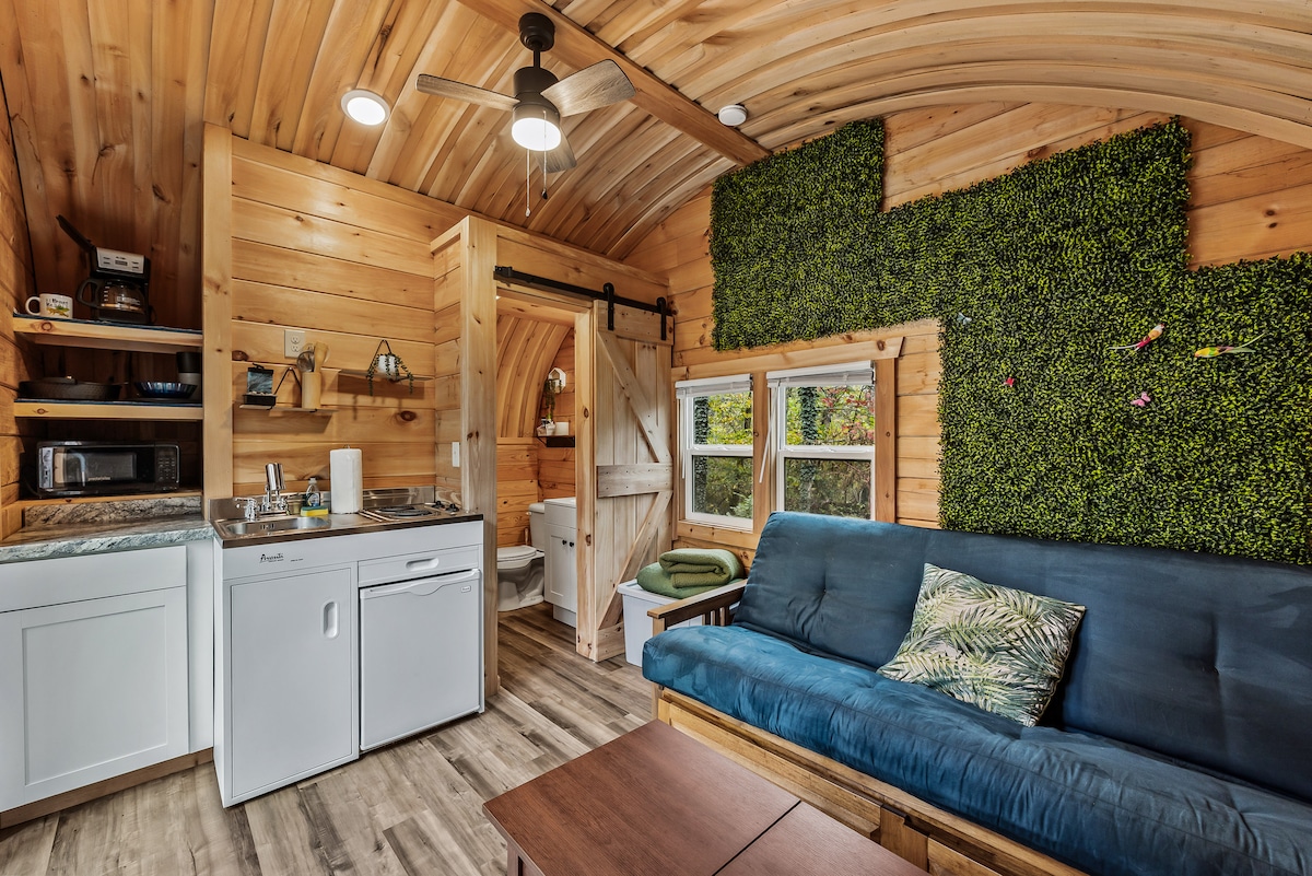 Roadside cottage remodeled in 2021, conveniently located, fully appointed, in historic 1800s ice house in the town of Elkton. Built into a massive limestone outcropping; open concept design, cathedral ceilings, 1 queen bedroom, full bath, open kitchen/living area, copper bar. Private gravel parking lot beside cottage. Steps away from the Shenandoah River, a craft brewery & eateries; 10 min. to: Skyline Drive/nat'l. park; water park/ski resort; winery. No smoking, events or pets.