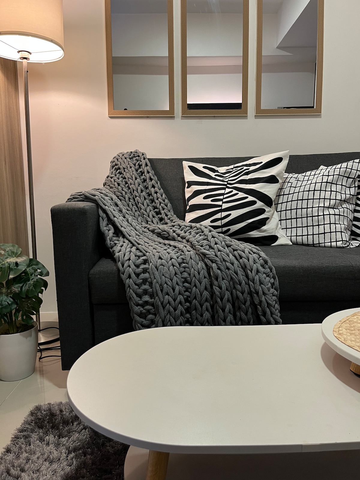 Welcome to CIRQ Studio at Eton Emerald Lofts. This brand-new 40sqm loft type condo unit is situated at the heart of Ortigas Business District and is just a 4-min walk to Robinsons Galleria. The main theme and inspiration of this condo is Japandi Modern hotel-luxe styled with midcentury modern furniture and decors. Neutral tones with a combination of dark wooden textures with accents of titanium blue and gold fixtures making every corner of the condo Insta-gram-ready. :)