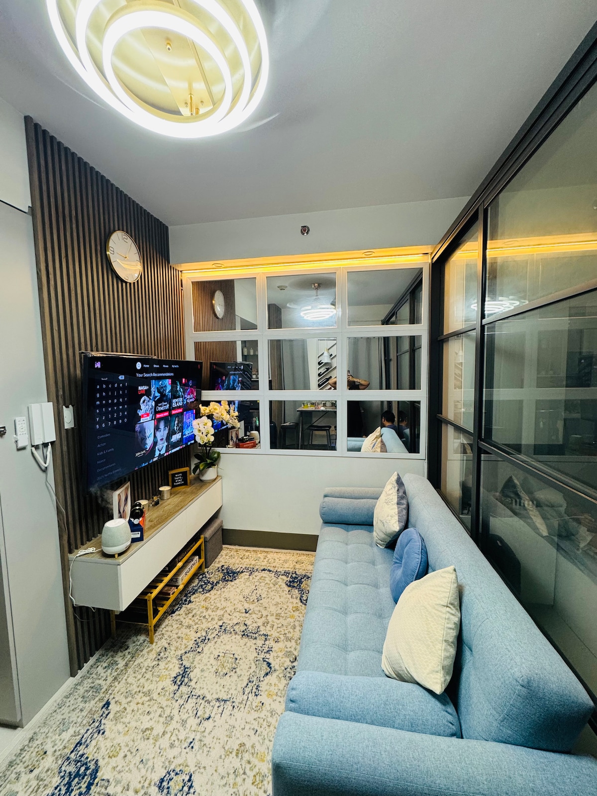 CASA ORTEGA PRIMERA is located in Fame Residences Tower 2 in Mandaluyong. It is a 24 sqm (259.41 sqft) SMART HOME with a balcony. With its prime location near SM Megamall, Greenfield District, Shangri-La, and Ortigas Center. Close to business hubs of Makati, BGC, and Ortigas & approx 30 minutes from the airport. ✔ Full size double bed + Sofa Bed ✔ Fully Equipped Kitchen ✔ 50" TV with Netflix & Disney+ ✔ PS5 ✔ Wifi up to 100mbps ✔ Smart Home w/ Alexa ✔ Balcony ✔ Pool ✔ Fame Mall See more below