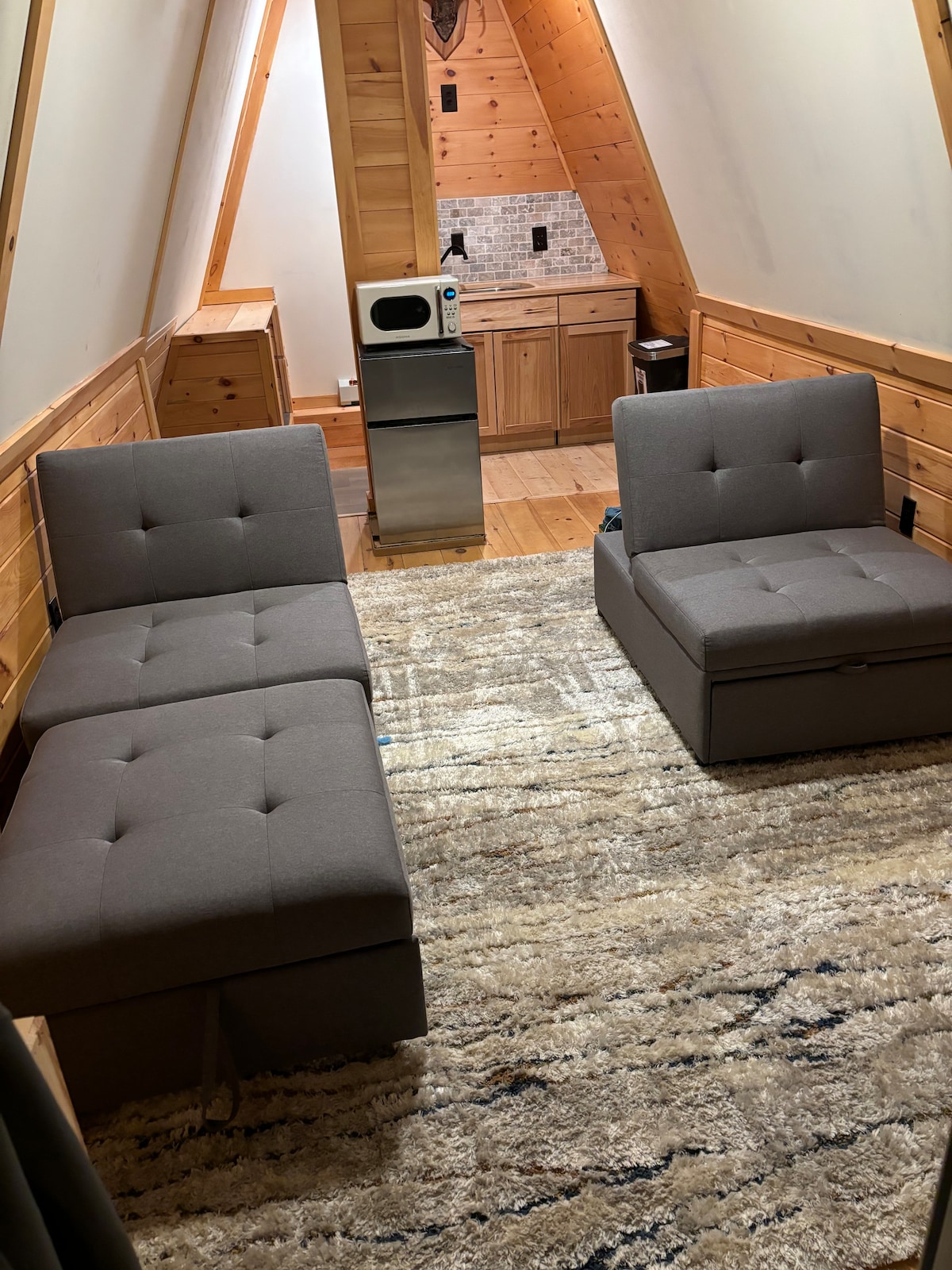 Escape to the Cedar Haven A-Frame in Damascus, PA – the perfect romantic hideaway just a short drive from NYC. Nestled in peaceful woods, this cozy 400-square-foot retreat offers all you need for a relaxing escape. Soak in the private hot tub, roast marshmallows by the fire pit, or unwind to music as you watch the forest through wide windows. Whether celebrating a special occasion or just needing time away, the tiny cabin invites you to unplug, reconnect, and make memories in nature’s embrace.