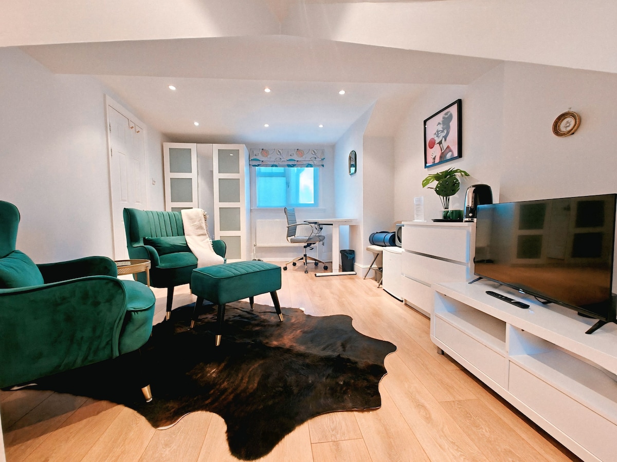 Modern, comfortable studio in safe West London with private entrance, full kitchen, bathroom, washing machine, fast WiFi, and dedicated workspace. Enjoy outdoor space with BBQ. Minutes from shops, transport links, (105 bus direct to Heathrow and 92 bus to Wembley Stadium). Fast WiFi available. Ideal for work trips or relaxing stays with everything you need.