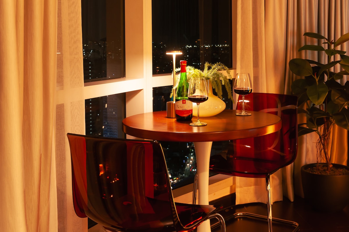 Welcome to a Unique Getaway in Uptown Parksuites BGC! Awarded as Airbnb’s Top 1% and Guest Favorite! Stay in a deluxe 1-bedroom with a balcony offering stunning city views. Located in the heart of Uptown Bonifacio, steps from international dining, shopping, and entertainment. Enjoy resort-style amenities like pools and a jacuzzi. For convenience, Landers Superstore, cafes, and more are right downstairs. Explore Uptown Mall and the first Japanese-themed "Mitsukoshi" mall just across the street.