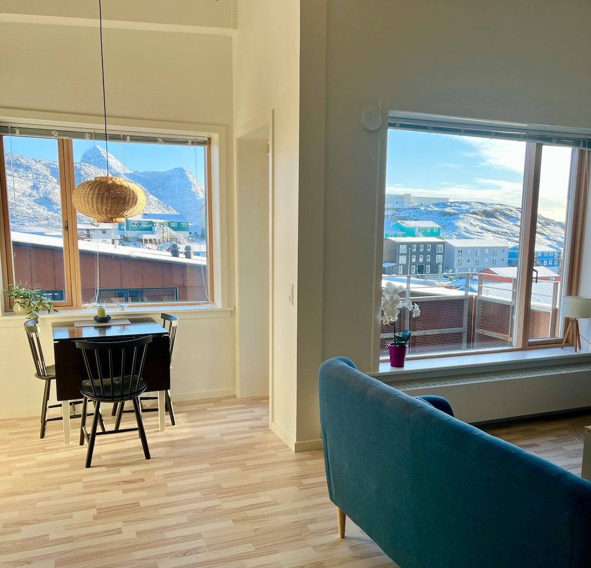 You will be close to everything when you live in this centrally located home. By renting this unique location with a beautiful view over Nuuk and the sea, you will have easy access to everything in the center, easy parking and only 2 minutes walking distance to the city center, which also has shops, cafes, restaurants and beautiful surroundings. The house can accommodate 8 overnight guests. Rent it today before it's rented out to others!
