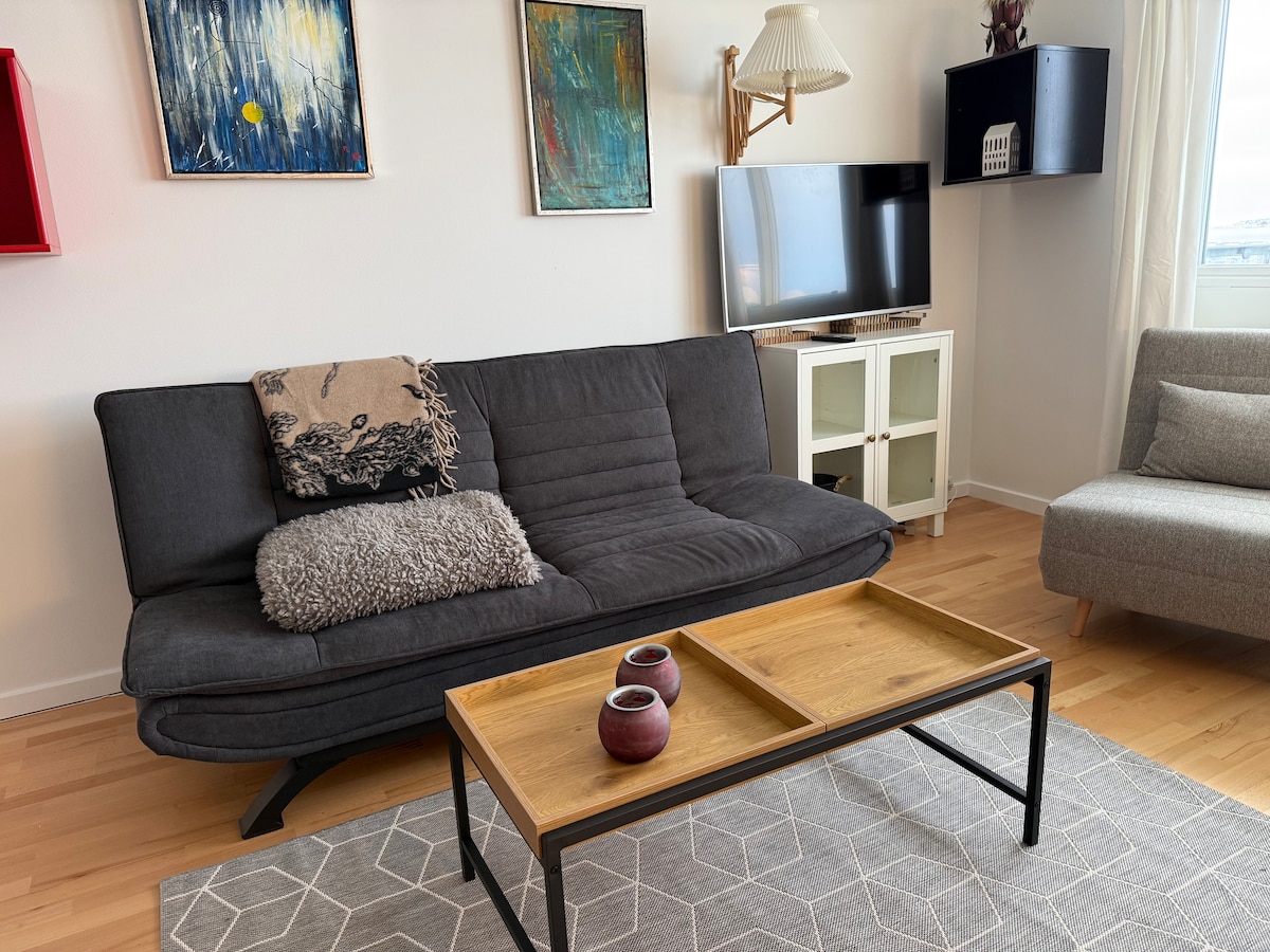Her får du en hyggelig og praktisk lejlighed med det vigtigste til dit ophold. Perfekt som udgangspunkt for at udforske byen og Grønlands natur. Fra lejligheden er der en fantastisk udsigt over både havet og det majestætiske grønlandske landskab. Du kan nyde synet af det ikoniske fjeld Sermitsiaq, det rolige blå hav og den smukke Hjortetakken i horisonten – en perfekt kulisse til både afslapning og fotografering. Vi glæder os til at byde dig velkommen!