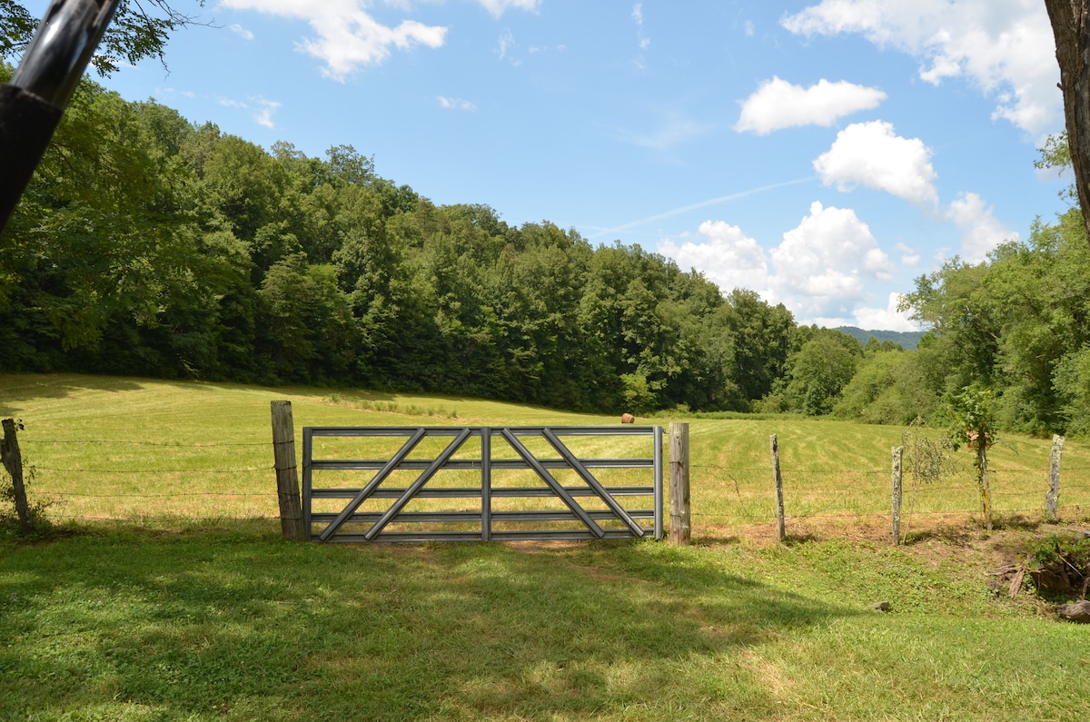 Walnut Grove Farmhouse, a renovated 1930s era home, is a remnant of an old farm. We are situated on 17 acres of rolling hills with handsome views from the upper pasture along with a stand of 14 walnut trees. Sit a spell on the porch, listen to the trickling brook (a roaring brook when we get significant rain), the sound of birds, the sounds at night and maybe some turkeys will venture through. We are located midway between Franklin and Dillsboro, Sylva, Cullowhee.