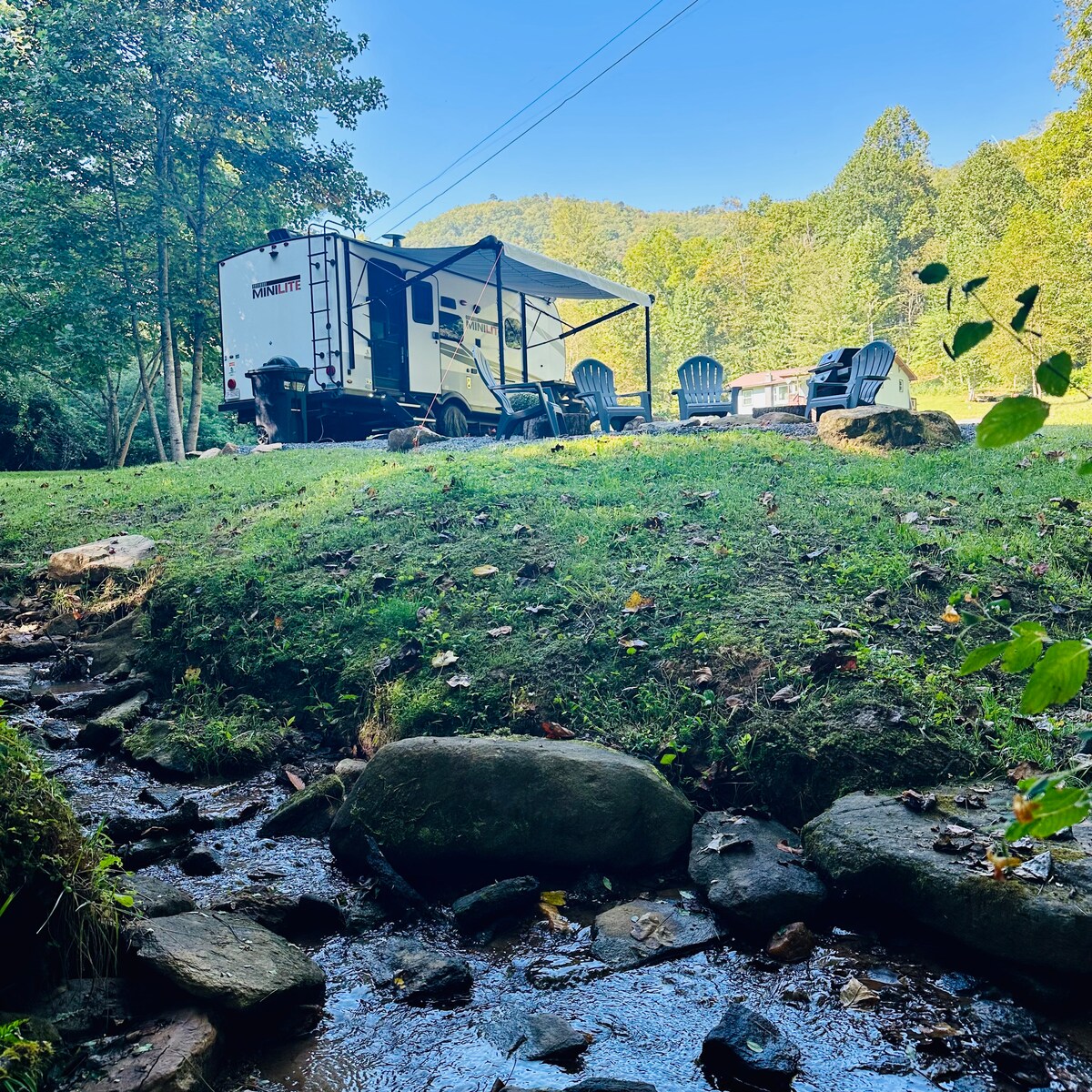 小溪畔露营车