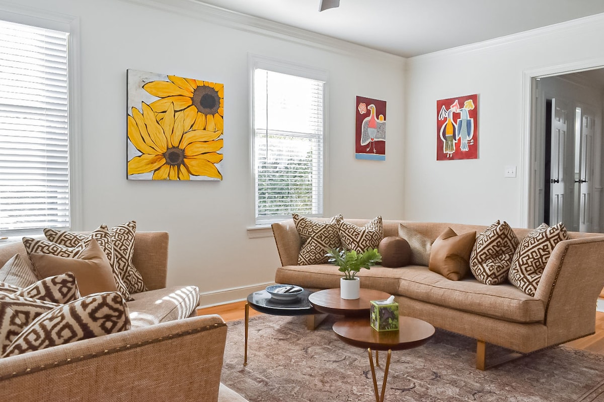 The Library of Ivy & Ellie is a 1949 cottage in Greensboro’s Mid-town / Idlewood neighborhood, minutes from Cone Hospital, UNCG, and downtown. Eco-conscious and pet-friendly, it blends vintage charm with modern comfort: local art, curated real-wood furnishings, a fully equipped kitchen, Smart TV, reliable Wi-Fi, off-street parking, and in-home laundry. Thoughtfully designed for rest or work, with pedestrian friendly location, it suits solo travelers, couples, or small families