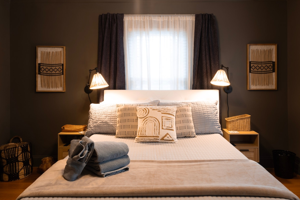 The Loft is a studio guest house in Downtown Greensboro. Thoughtfully furnished, comfortable, and immaculately clean and disinfected apartment in the heart of downtown. Lots of light and private. The electric fireplace adds to the cozy feel. Easy, independent check-in/out w/ electronic lock. This is a studio apartment with 2 beds--a queen sized murphy bed, and a full sized futon couch bed. It is best suited for singles, couples, or people that feel comfortable sleeping in the same space.