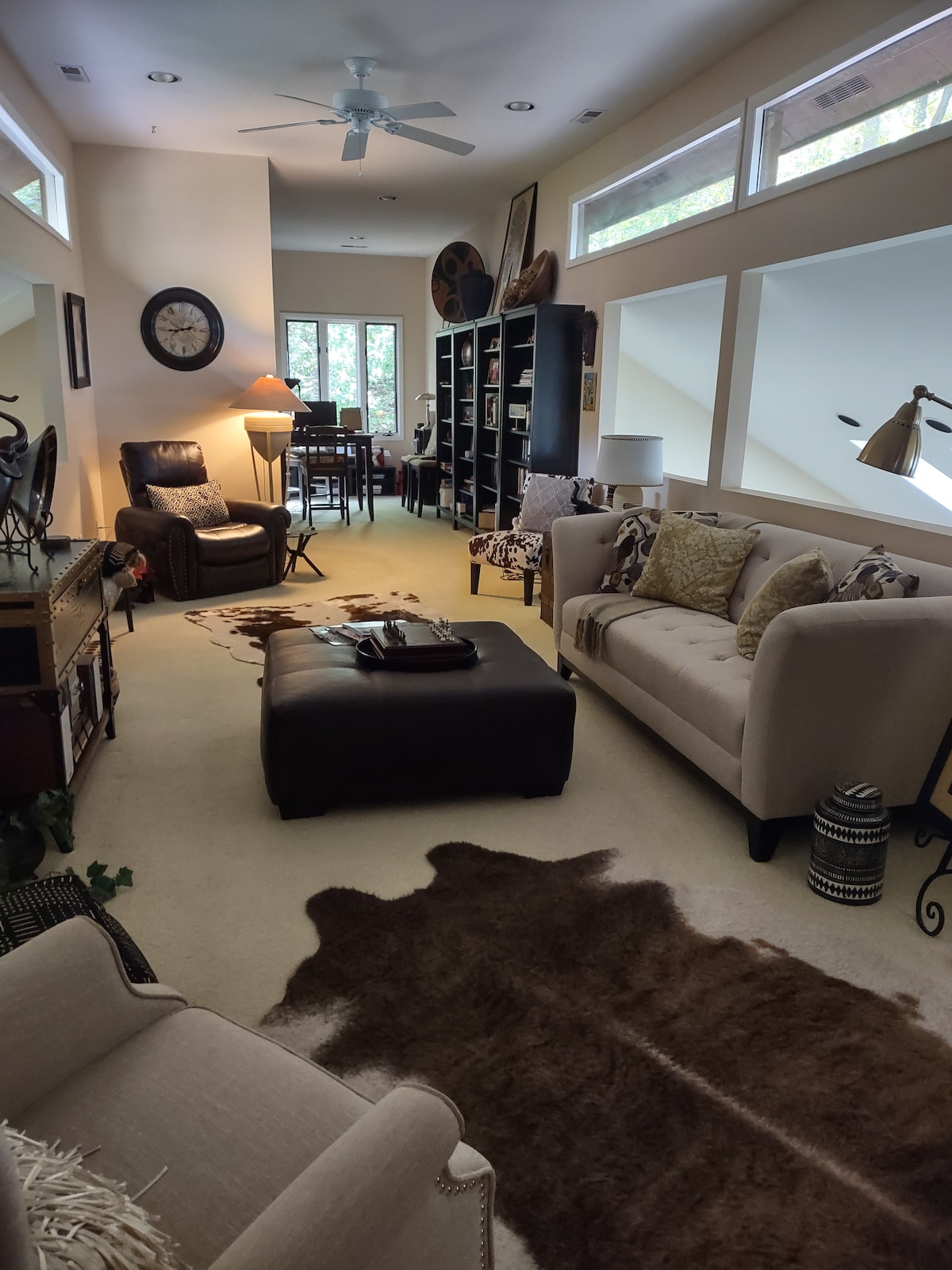 1960s ranch style home on 2 acres with 2,400ft² interior. This home has been fully remodeled with a large open floor plan and all modern amenities and decor. With ample yard and patio space, large bedrooms, bonus room and 3 full bathrooms there is plenty of space to spread out. • Abundant Natural Lighting • Backyard w/ patio + fire pit + hammocks • Comfy Beds • Fully stocked Chefs Kitchen • Large Private Deck + BBQ grill • Indoor fireplace • 400Mps WiFi • 3 x 4K TVs w/ Disney, Netflix & Prime