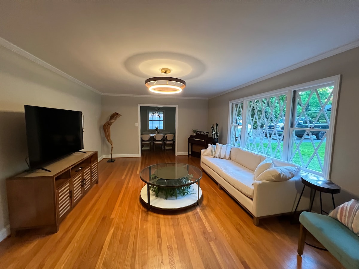 1960s ranch style home on 2 acres with 2,400ft² interior. This home has been fully remodeled with a large open floor plan and all modern amenities and decor. With ample yard and patio space, large bedrooms, bonus room and 3 full bathrooms there is plenty of space to spread out. • Abundant Natural Lighting • Backyard w/ patio + fire pit + hammocks • Comfy Beds • Fully stocked Chefs Kitchen • Large Private Deck + BBQ grill • Indoor fireplace • 400Mps WiFi • 3 x 4K TVs w/ Disney, Netflix & Prime