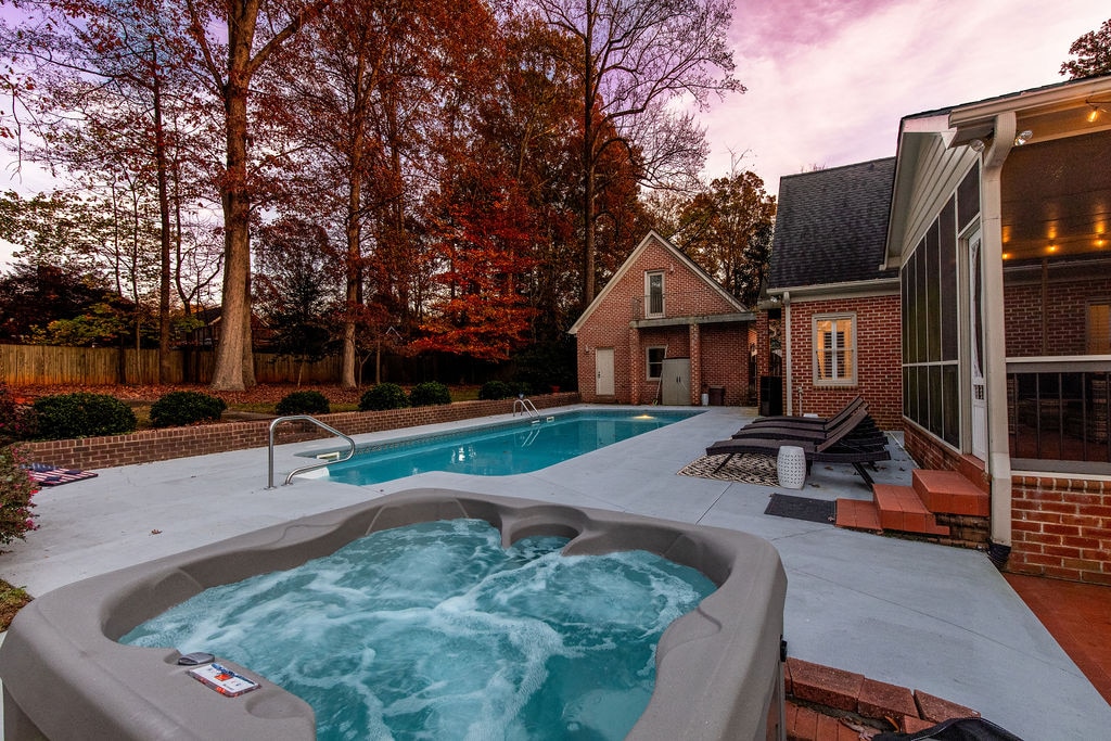 POOL OPENS APRIL14! Experience the ultimate getaway in this spacious 5-bedroom, 4.5-bath home that sleeps up to 20 guests. Highlights include a pool, 4-person hot tub, expansive yard, and a screened-in porch. Enjoy endless entertainment in the game room with pool table and ski ball or stay active in the gym with a sauna. Perfect for reunions or retreats, this oasis is close to Winston-Salem, Greensboro, and High Point. Relax, recharge, and create unforgettable memories in this luxurious retreat!