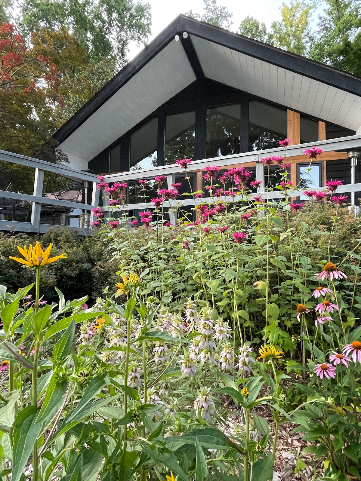 Enter from The Sky Deck, a 3 story high deck. 2 bed, 2 bath, 1000 square ft space with full kitchen, living room, dining room & laundry. All new furnishings/appliances. No shared space. Complete privacy. Professionally decorated. Newly added lighted makeup mirrors and full length mirrors in each bathroom/bedroom. Stone patio on lake. 5 miles to Furniture Market and High Point Hospital. 10 miles to Greensboro Coliseum! Built in 2019 above my home. Parties/additional guests are not allowed.