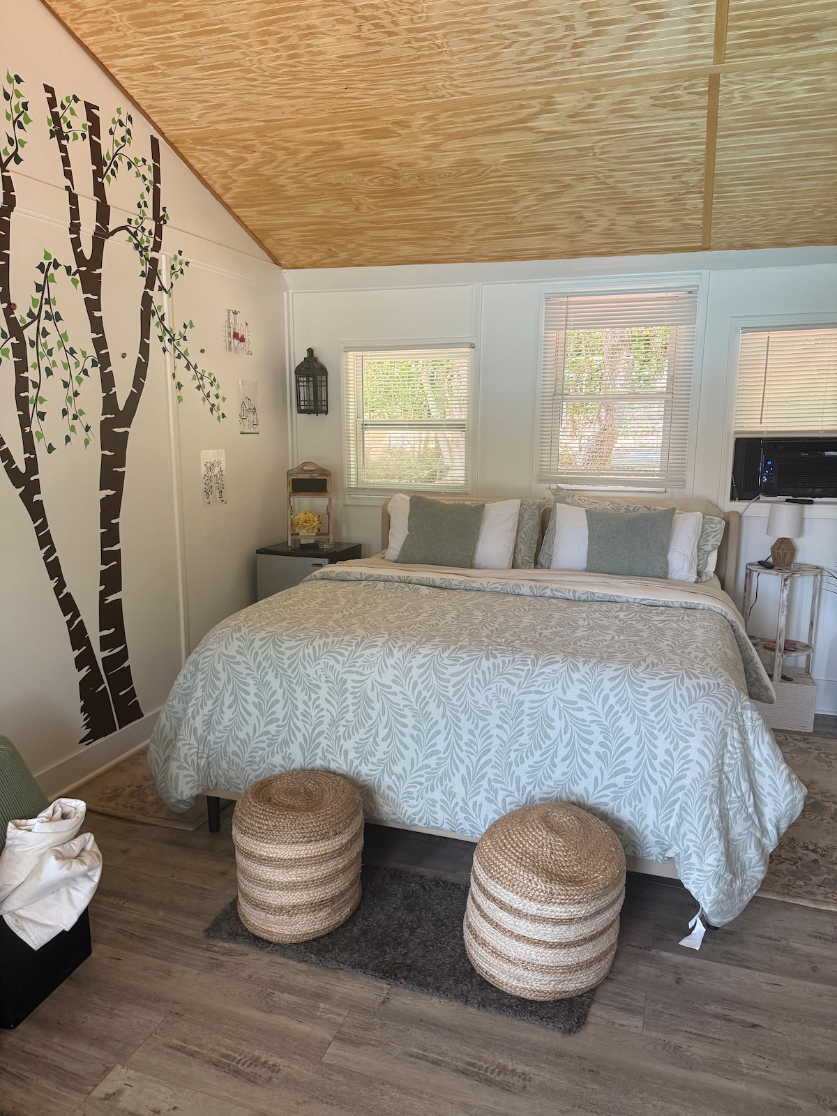 MINI PRIVATE OASIS. 6 MILES TO DOWNTOWN GREENVILLE! LAKEFRONT + PRIVATE DOCK NY Times #1 AMERICAN CITY! Experience modern luxury in your serene mini suite. Please note: the suite is located as an extension attached to a classical Scandinavian chalet. The suite is private. No shared spaces, shared soundproofed wall. 6mi downtown Greenville Amenities include: - Private entrance & patio - Private dock - 43” Roku TV - Charcoal grill, fire pit - Luxury toiletries - Blackout curtains