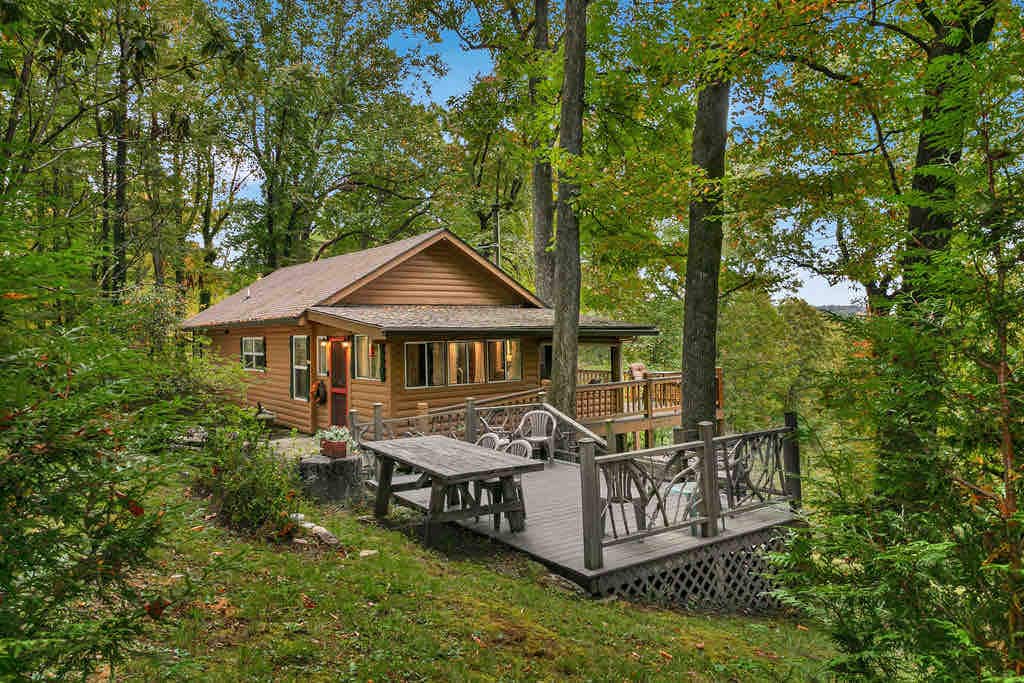 *No Cleaning Fee!* Relax at this peaceful riverside sanctuary. This cabin is nestled on 20 acres with fruit trees, blueberry bushes, and a pond with a picnic area and gazebo. Spend your time on a spacious patio directly overlooking the river. This get away is perfect for the nature lover. Full of natural light and large windows, our cabin is equipped with a full kitchen that has everything you need. It is a half mile from the road, so enjoy the quiet countryside!