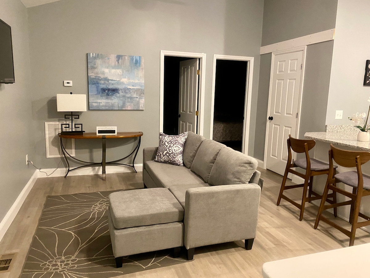 You’ll love this stylish condo. We take great pride and put great care into our property. It has been updated with new flooring and appliances and is clean, cozy, and charming. Enjoy nearby fine, casual, or quick dining and all types of shopping. You will want to stock up and stay home to relax, cook, and enjoy the large screen TVs and high speed Internet service (just like home). Stay a night, weekend or a few months. The fenced in yard is perfect for your furry four-legged family members.