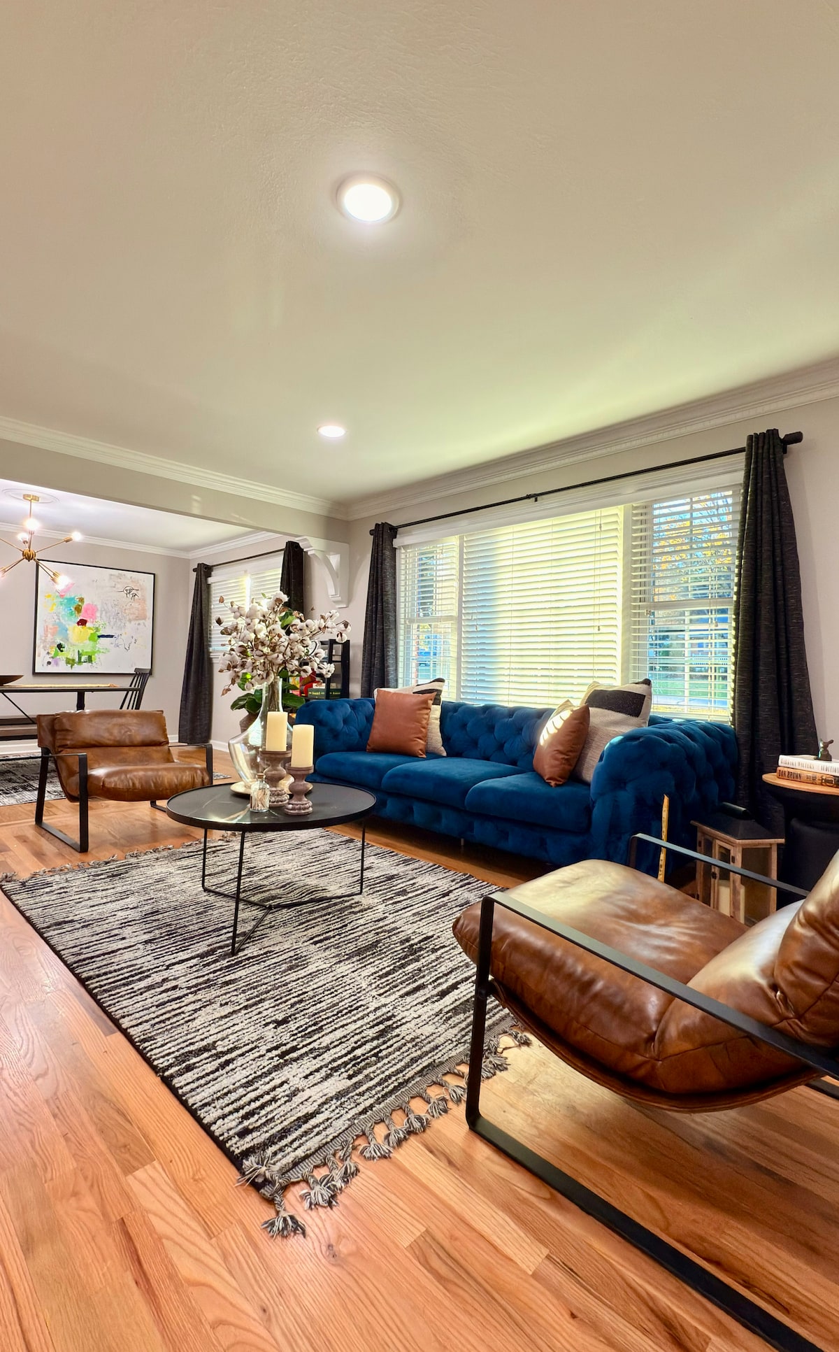 Comfortable and colorful accommodations await you at the Blue Diamond BNB! This charming 1400 sq ft home is loaded with fun and fashionable amenities to ensure you have a memorable stay. Fully stocked and ready to welcome families, couples, business or leisure travelers, as well as extended stays with pet dogs. Situated in a quiet Eastside community, you're minutes from I-85 & 385 and centrally located between Greenville, Greer, Taylors, and Simpsonville.