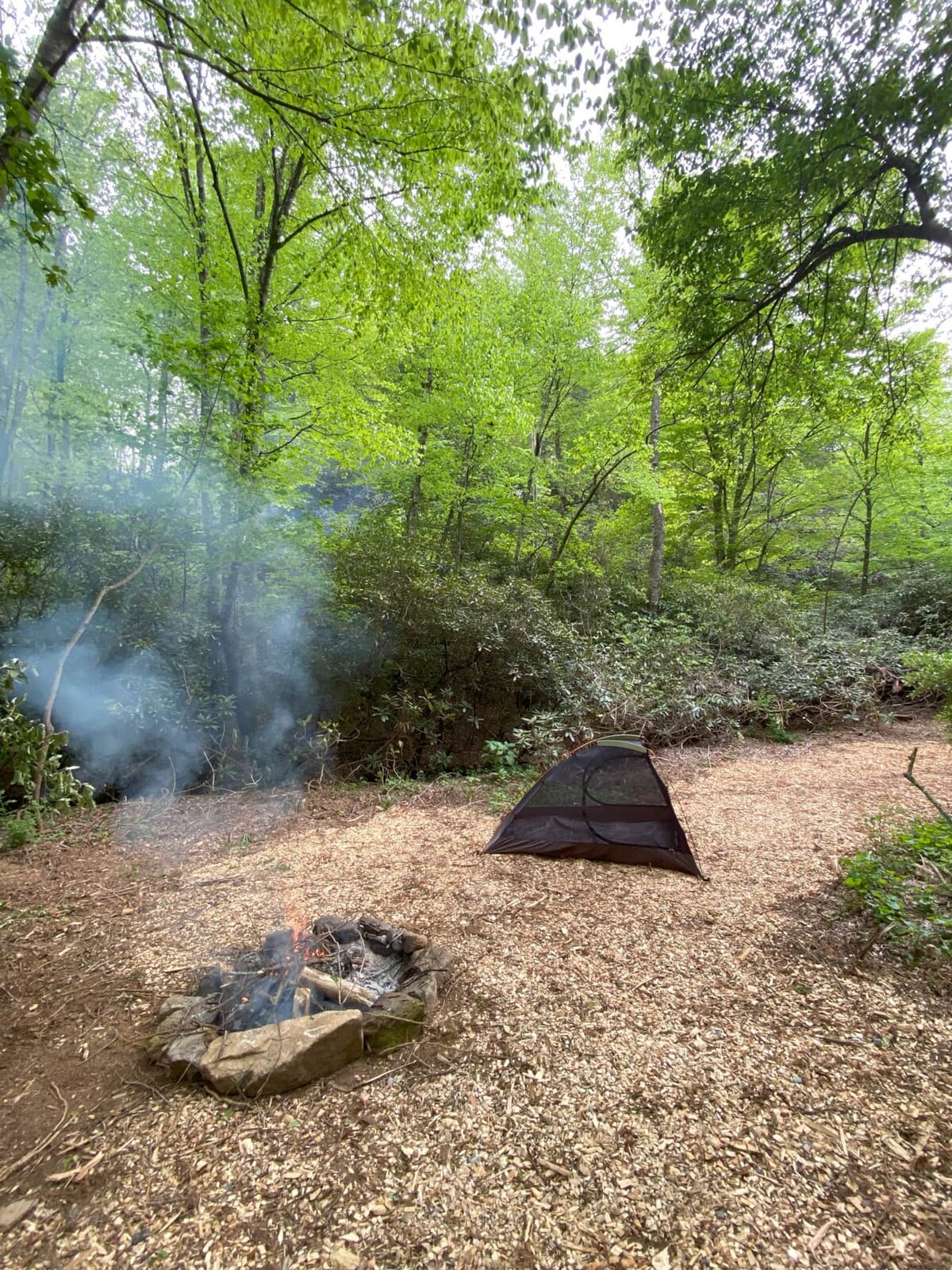 Enjoy this large spacious campsite next to Cold Spring Branch. Park in the first parking lot and use our wagon to load your gear down the trail to the private site tucked into the trees along the creek. A picnic table a fire ring are available and several large tent pads are cozied up next to the creek. Fetch water from the creek and use our Sawyer water filter to ensure clean treated drinking water. Hike and bike our trails, lounge in the grassy meadow or just relax in the shade.