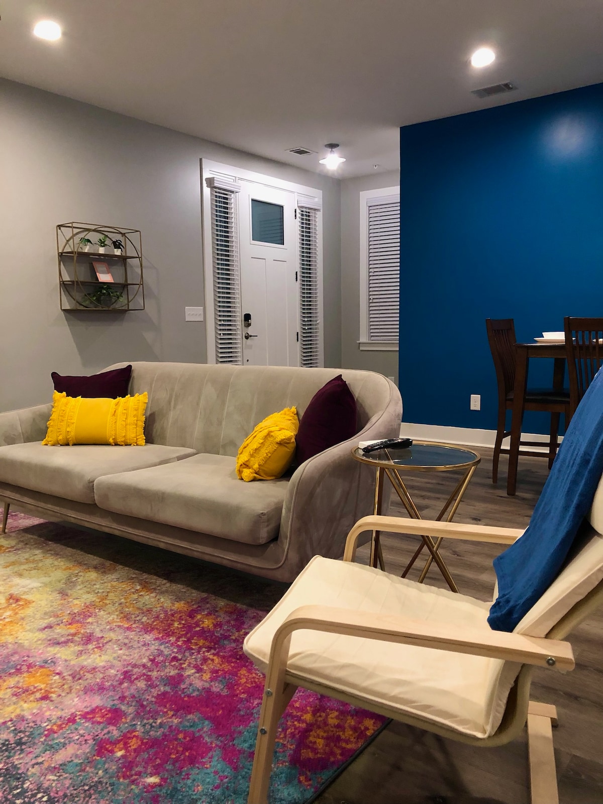 Indigo Terrace is a new one-bedroom basement apartment perfect for a couple, small family or business traveler. This modern space features a beautiful, spacious bathroom (with tub for 2!), full kitchen, one bedroom with queen bed, and sleeper sofa in living room. It’s located in a quiet, tree-lined neighborhood and has a private driveway & entrance with self check-in. Conveniently situated off a main road, it's close to GSP airport, Taylors Mill, and just 8 miles from downtown Greenville.