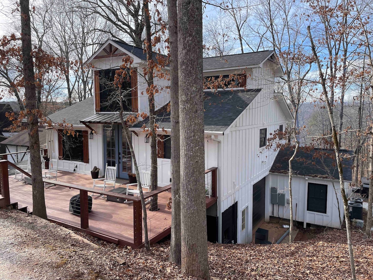 The Farmhouse at Saluda River Farms — a converted barn with rustic charm, sweeping views, and a spacious deck perfect for entertaining. Inside, you'll find a cozy yet open layout with a large main-floor gathering space, one bedroom upstairs, and two downstairs — ideal for families, small groups, or couples traveling together. Whether you're sipping coffee on the deck or sharing a meal in the warm, farmhouse-style interior, this unique stay invites you to relax, rejuvenate, and feel refreshed.
