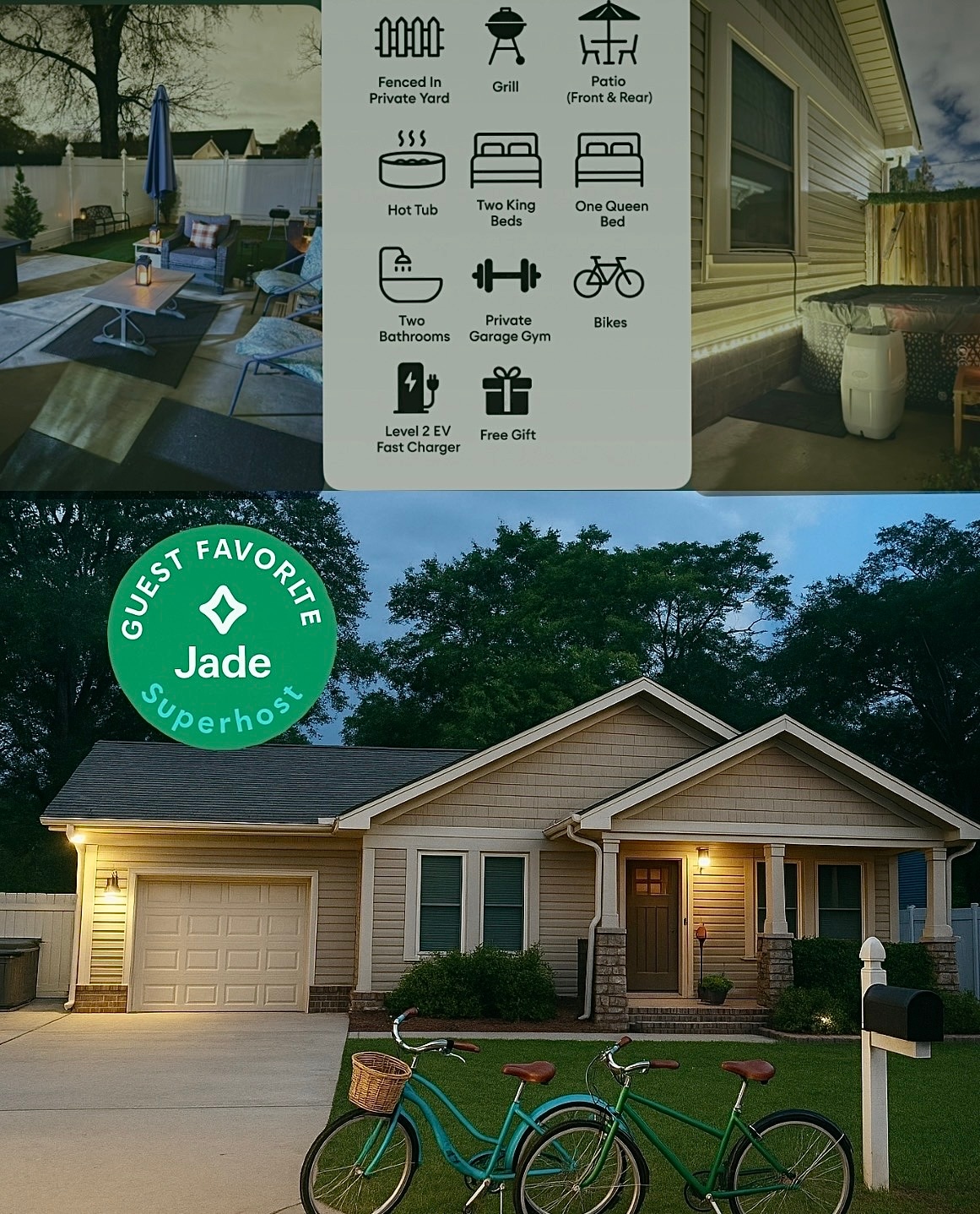 Modern Comfort & Outdoor Relaxation in Greenville Experience a stylish and well-equipped home featuring fast Wi-Fi, EV charger, garage gym, a security system, wiand three bedrooms with two luxurious king beds and one queen bed. Two full bathrooms, a private fenced backyard, and plenty of amenities, this home offers the perfect blend of comfort and convenience. Whether you’re visiting for work or leisure, this home provides a peaceful retreat just minutes from everything Greenville has to offer