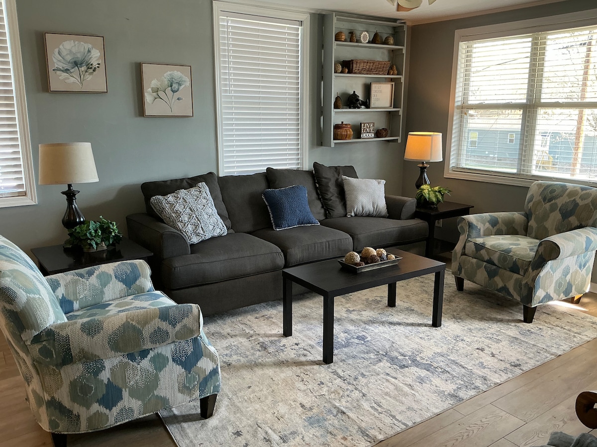 Relax with the whole family at this peaceful lakefront home. We offer the perfect place to unwind, enjoy nature, and spend quality time together. Step outside to a spacious backyard that leads directly to the lake, complete with a fishing dock. The furnished back deck overlooks the water & is the perfect spot to start your day with a sunrise. In the evening, our fully equipped kitchen makes it easy to prepare meals, use the barbeque grill for dinners and dine outdoors overlooking the lake.