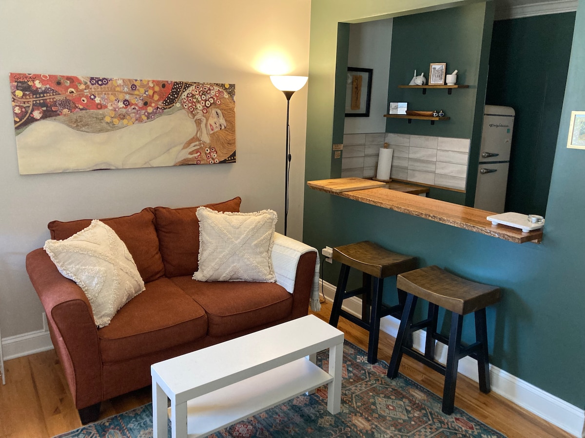 2nd floor apartment in the Historic West End, fully renovated, is open & airy--a comfortable mix of vintage & modern. 6 blocks to the downtown ballfield; 5 to the Swamp Rabbit Trail & close to the heart of downtown, the Reedy River & Peace Center. A great location to take in all the shopping, sports, art, food & music Greenville has to offer! Private entrance. Off street parking. Please note 7 steps to front door and 16 to apartment. Also 5th bed (trundle) is intended for a small child only.