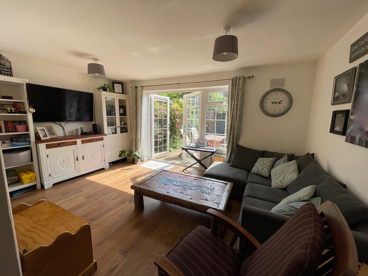 WELCOME TO OUR BEAUTIFUL HOME! Perfect for families and large groups (up to 10). The entire home and gardens will be all yours. Recently renovated with 4 comfortable bedrooms (2 with en-suite), a big kitchen for socialising in and a Mediterranean-style gardens located on a quiet residential road. We are 20 min walk to Woolwich Station. From here you can get to the Excel (4mins), Canary Wharf (8mins), Liverpool St (15mins), Tottenham Court Rd (20mins), Paddington (26mins), Heathrow (50mins).