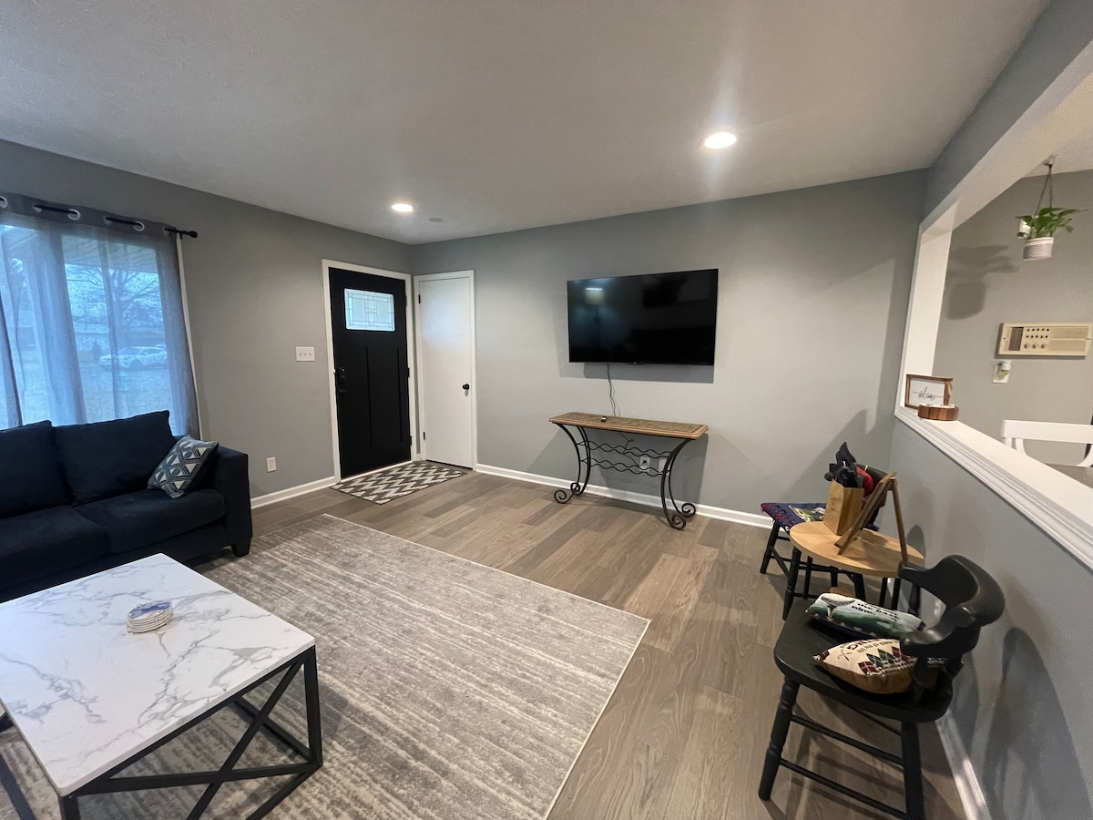 Enjoy your home away from home in a quiet neighborhood just minutes from all the attractions of downtown Indy. 5 minutes from the highway with lots of restaurants and stores nearby. 15 minutes to the Lucas Oil Stadium, 20 minutes to the Convention Center, Indianapolis Zoo, and White River State Park. 25 minutes to the Motor Speedway. Home is fresh, comfortable, and stylish. Stocked kitchen, fully fenced backyard with a fire pit and a picnic table.