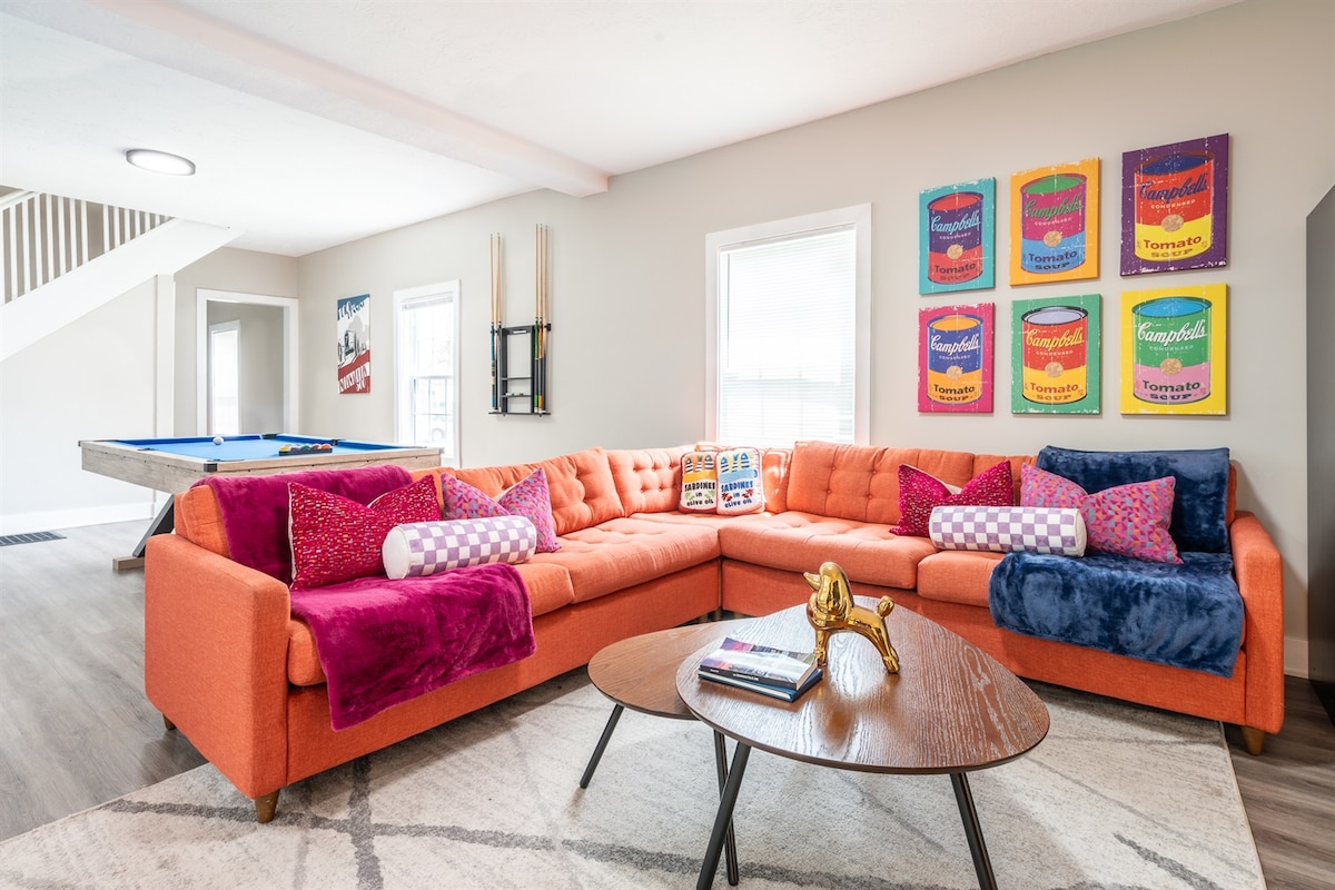 Welcome to Robin's Nest, my cozy, modern, open-concept home in Indy! This inviting space includes 2 bedrooms, 1 bathroom, and 2 queen beds. Enjoy amenities such as a coffee bar, fire pit, and workstation. Let your fur babies run free in my fully fenced-in yard. You’re in close proximity to Lucas Oil, the Convention Center, and Gainbridge Fieldhouse, Murat, and many major hospitals are in a 10 mile radius.