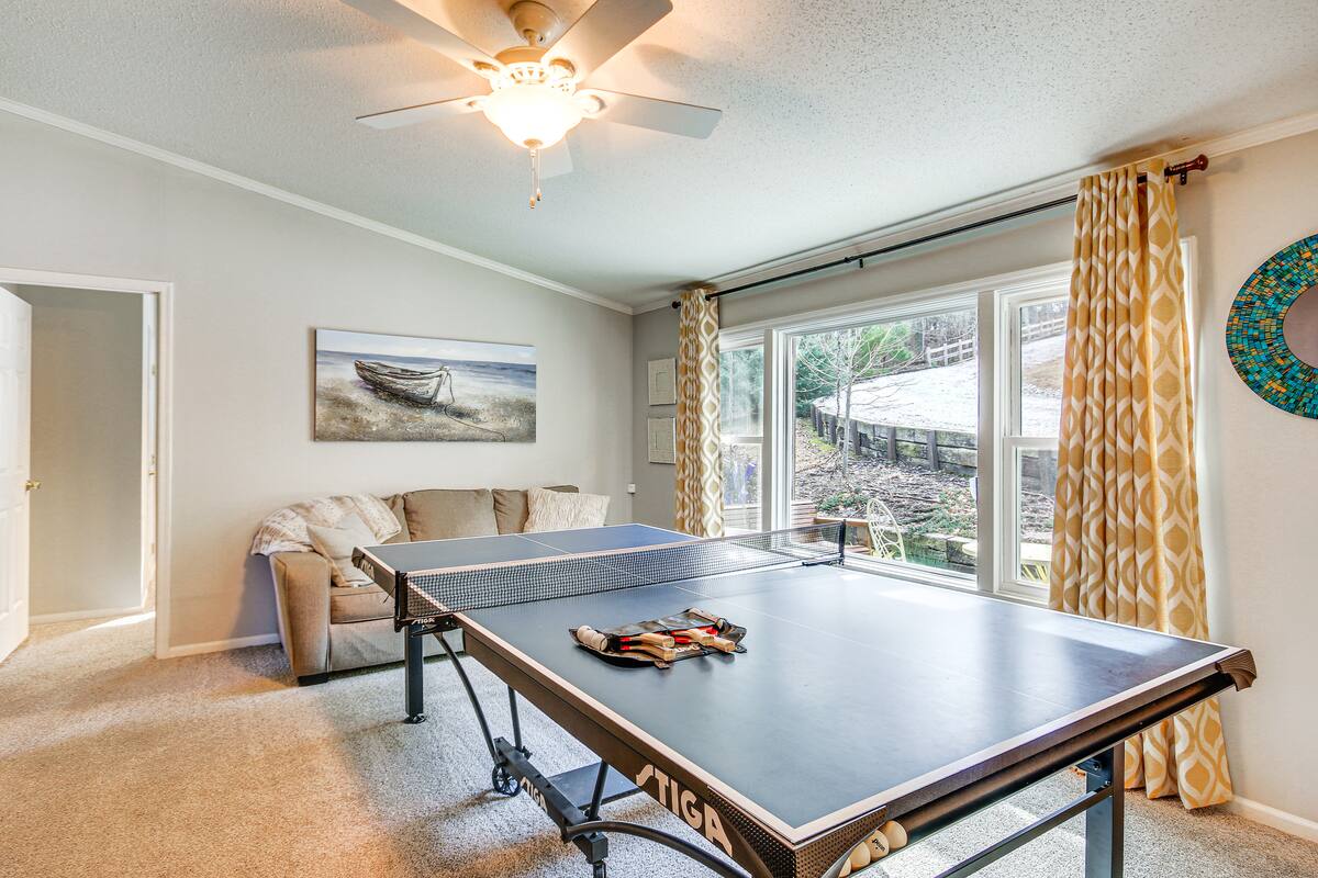 Escape to a luxurious lakeside paradise on beautiful Lake Greenwood! This spacious 3-bedroom, 2.5-interior bathroom retreat (w/full outdoor bath) is your getaway for relaxation and family fun. Featuring arcade games, pool table, shuffleboard, ping pong, fire pit, private dock, screened-in porch, inspiring coffee table books, contemporary art, and driveway parking. Wake-up to expansive views of the lake and make the most of modern amenities, including high-speed Wi-Fi and a washer/dryer.