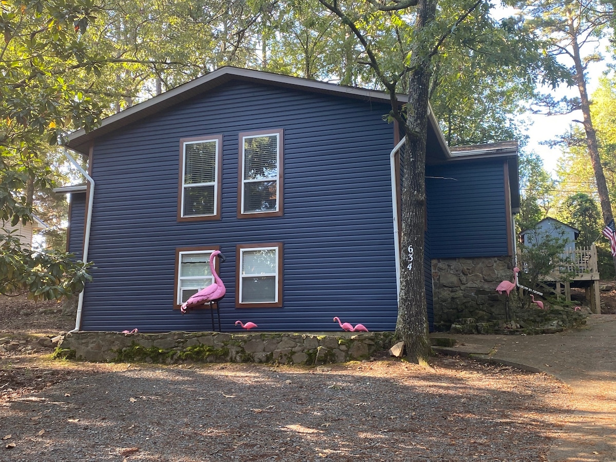 This cozy 4 bedroom 2 bath home is located on the water at Greer's Ferry Lake in Higden. The pathway to the water has a beautiful view and a great place to jump in the lake or drop a fishing line. Water equipment provided for guests include 2 kayaks with paddles, fun noodles and more.This lake house has 2 king rooms with new Serta hybrid mattresses. One of the king rooms also has 2 chairs that unzip and fold out into twin beds. The lakeview Queen room has a new Serta pillowtop hybrid mattress.